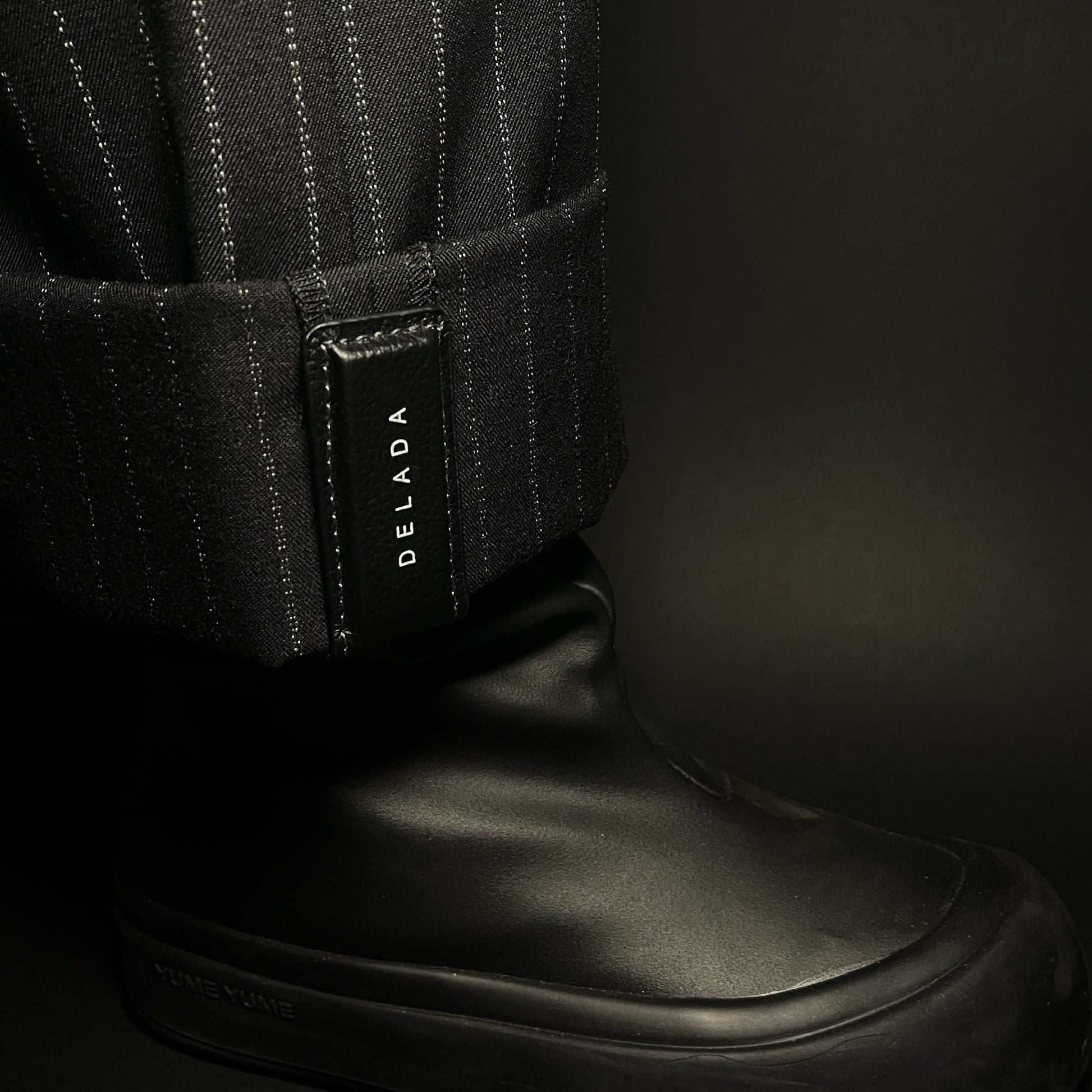 Our branded leather trouser clip is the perfect answer to rolling the cuffs of lighter trousers, such as wool or silk, without them quickly falling down, or simply use the clip accessorise any trousers you want.