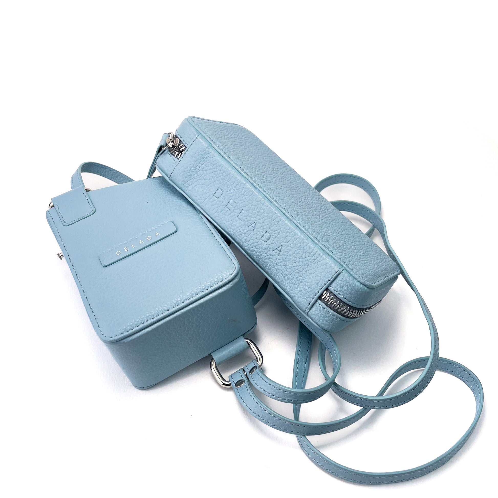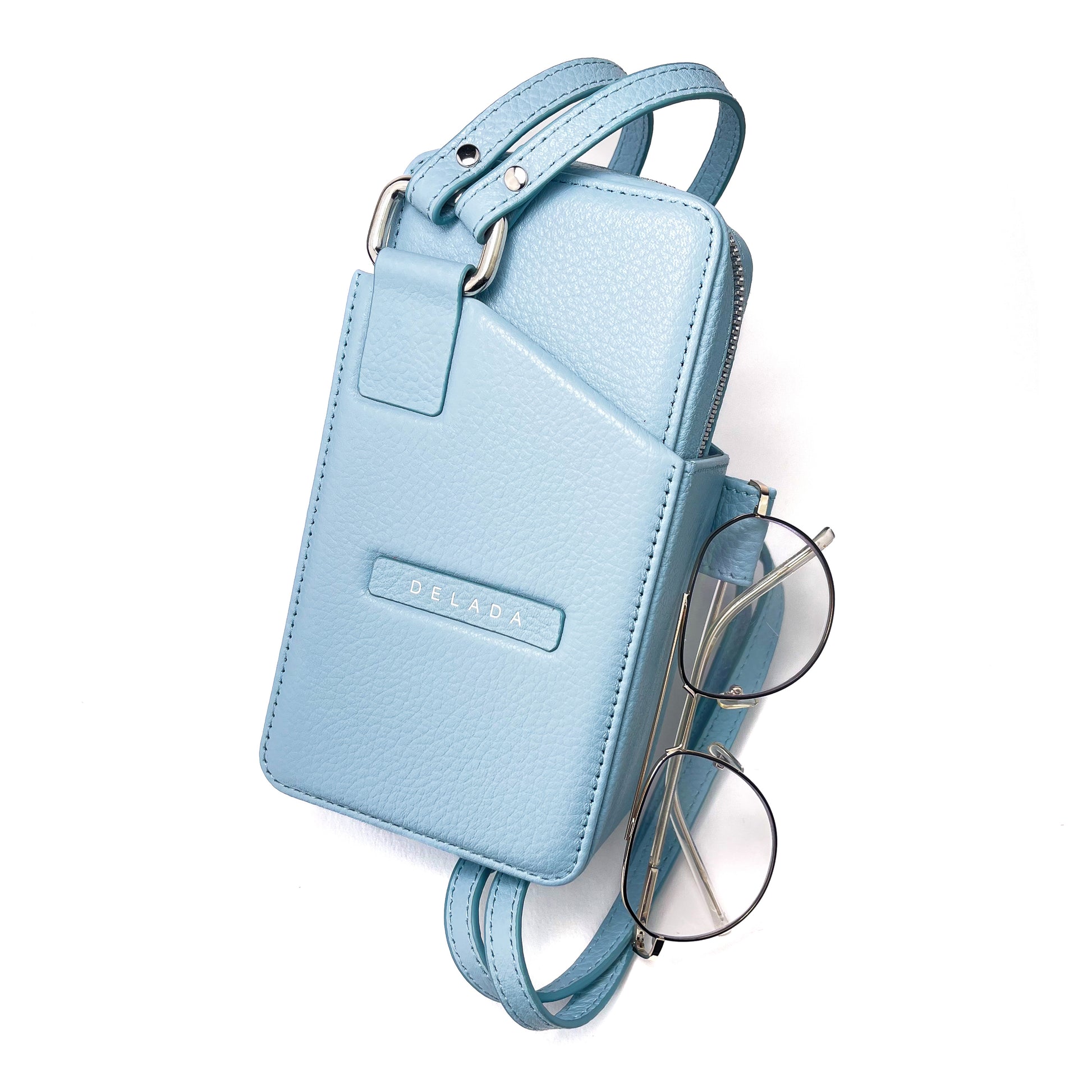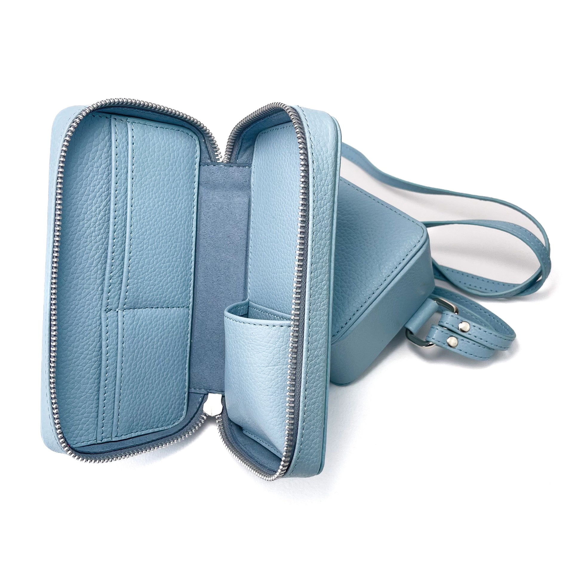 POUCH B, in a soft pastel blue, is a compact crossbody bag designed for all-day wear.