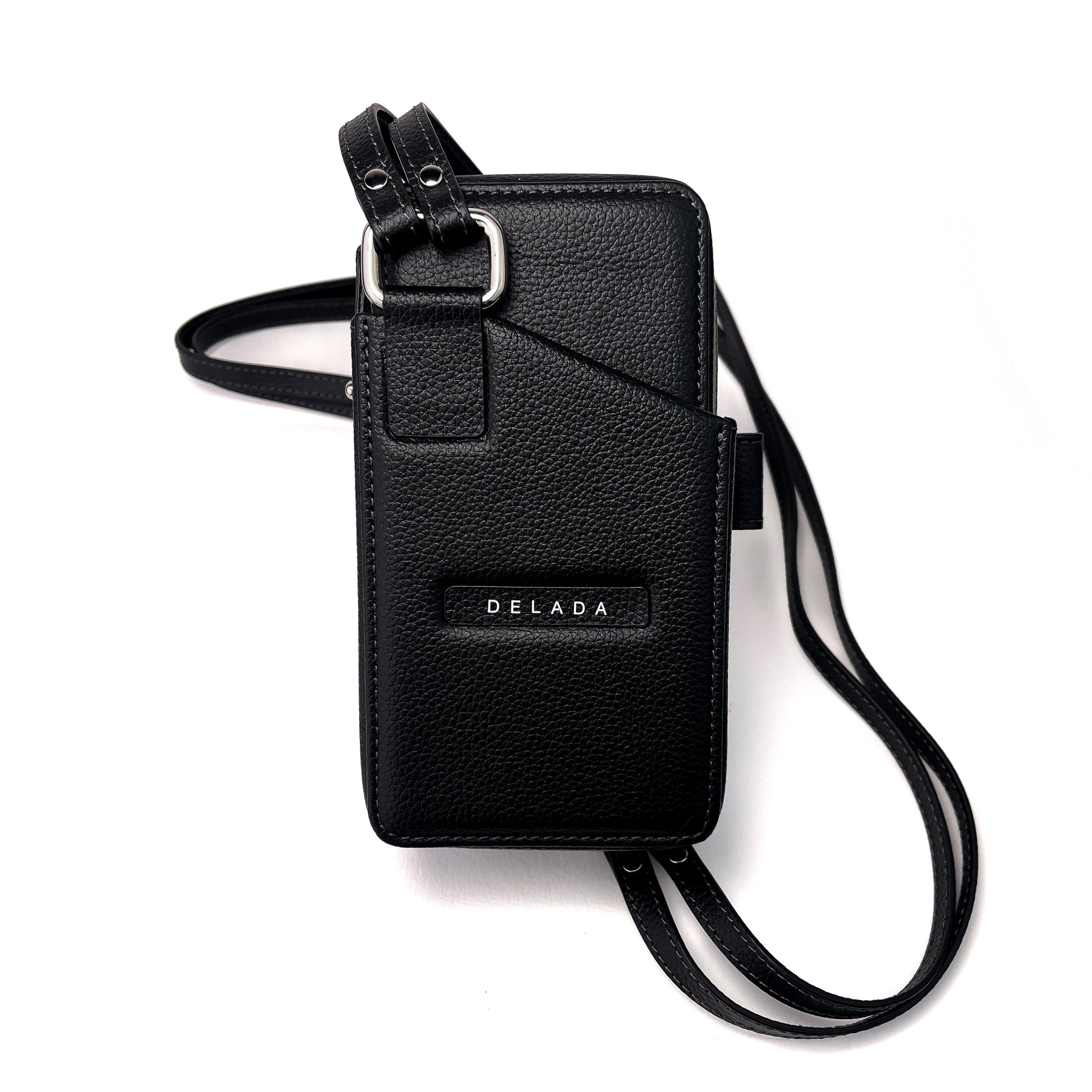 Featuring ample space for your phone, cards, cash, and a convenient tab on the side to hold your glasses. The wallet is secured using a ball stud fastener. The front, adorned with the Delada logo in subtle white lettering.